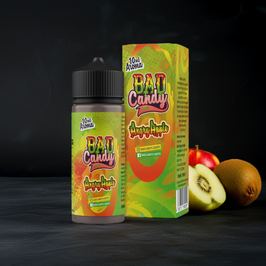 Bist du bereit für einen wütend leckeren Geschmackskick? Das Bad Candy Liquids Angry Apple Aroma vereint saftige Äpfel mit exotischer Kiwi zu einem unwiderstehlichen Dampferlebnis – made in Germany!