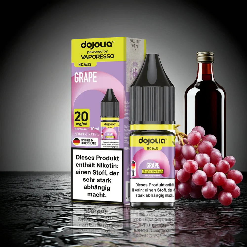 Deine Vorlieben sind einzigartig, und deshalb bietet Dir das Dojoliq Grape Nikotinsalz Liquid zwei wunderbare Optionen. Die 10 mg/ml Variante ist wie ein sanfter, aber beständiger Begleiter – ideal für entspannte Dampf-Momente zwischendurch oder wenn Du es einfach etwas leichter magst. Die 20 mg/ml Stärke dagegen packt Dich mit ihrer intensiven und langanhaltenden Wirkung. Sie ist Dein zuverlässiger Partner in stressigen Phasen oder wenn Du einfach das Maximum an Geschmack und Wirkung willst. Beide Stärken entfalten dabei stets denselben, unverfälschten Traubengeschmack.