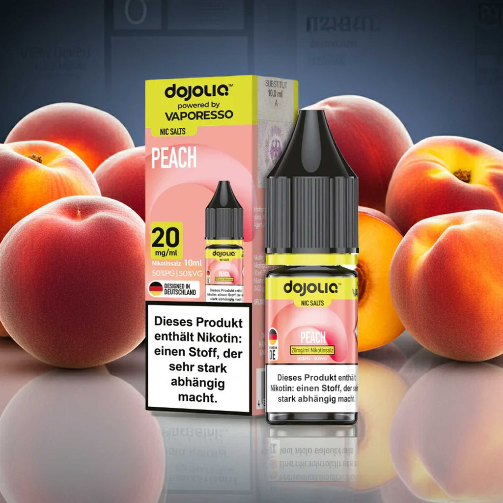 Stell dir vor, du beißt in einen saftigen, sonnenverwöhnten Pfirsich – genau dieses Gefühl der puren Frische erwartet dich mit dem Dojoliq - Peach - Nikotinsalz Liquid. Denn jeder Zug entfaltet eine unvergleichliche Fruchtkomposition, die nicht nur deine Geschmacksnerven verwöhnt, sondern auch dein Dampferlebnis veredelt.